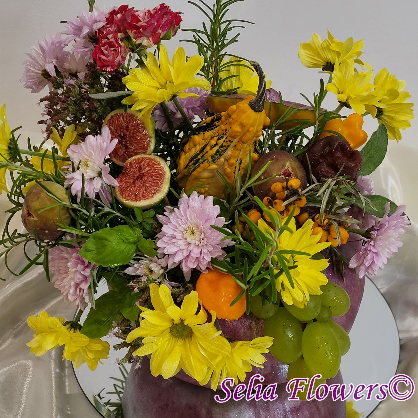Este construit cu flori de toamnă, plante aromatice (rozmarin, salvie, busuioc și coriandru), fructe (smochine, struguri, cătină) și legume (minidovleac, ardei).