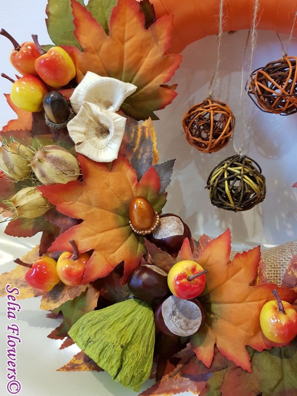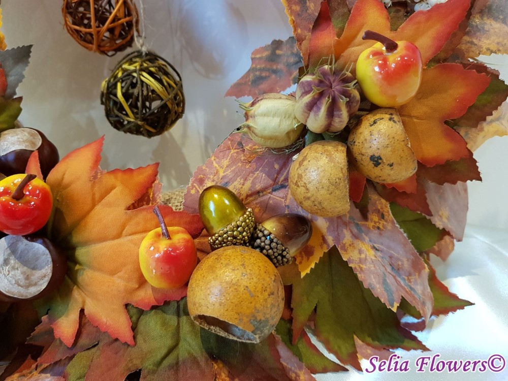 Compozitie: flori naturale uscate sau stabilizate, sfere din ratan, frunze din matase si alte accesorii.