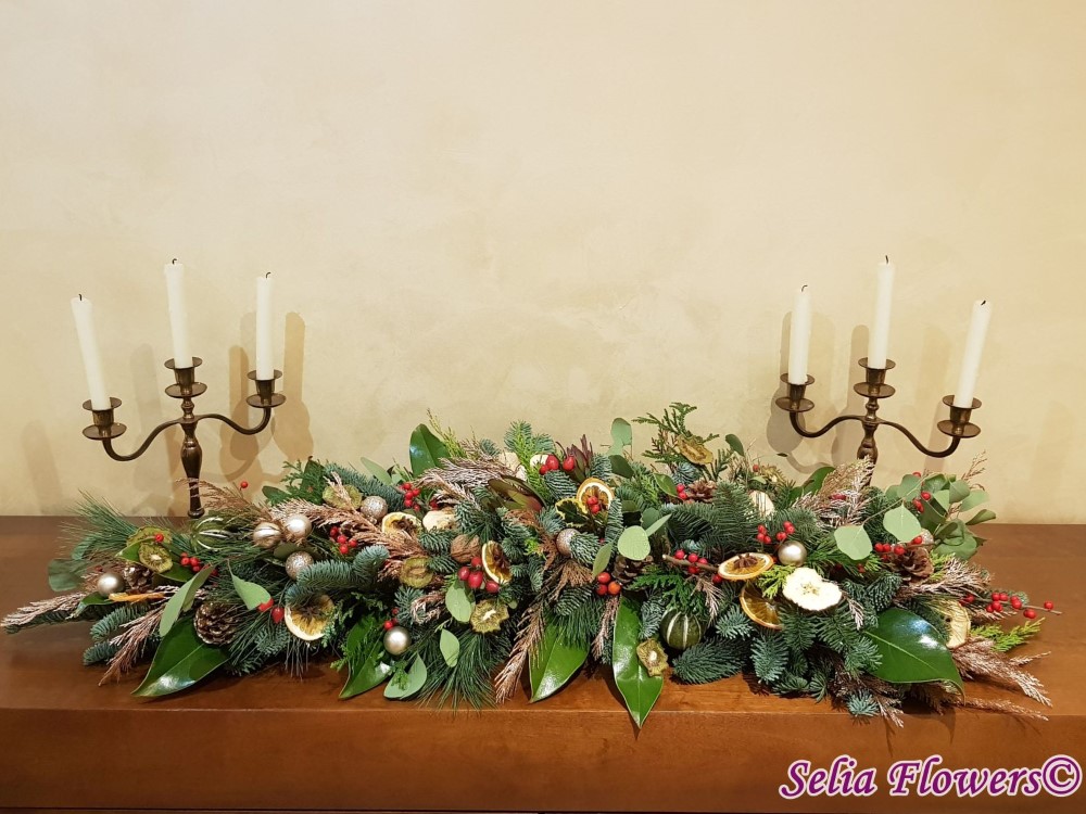 Este foarte potrivit ca decor pentru masa festiva de Craciun sau comoda din livingul tau. Lungimea aranjamentului este de aproximativ un metru .