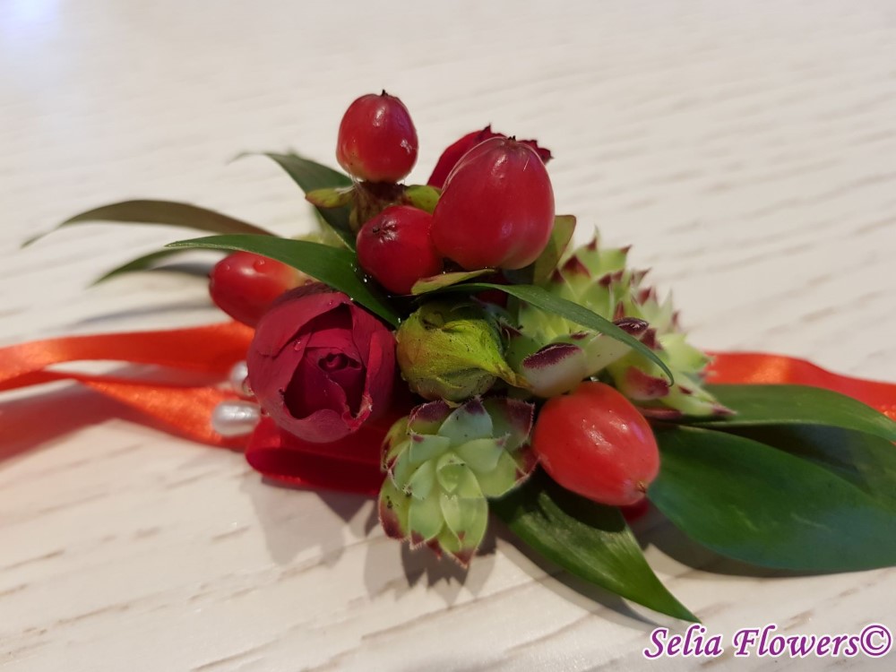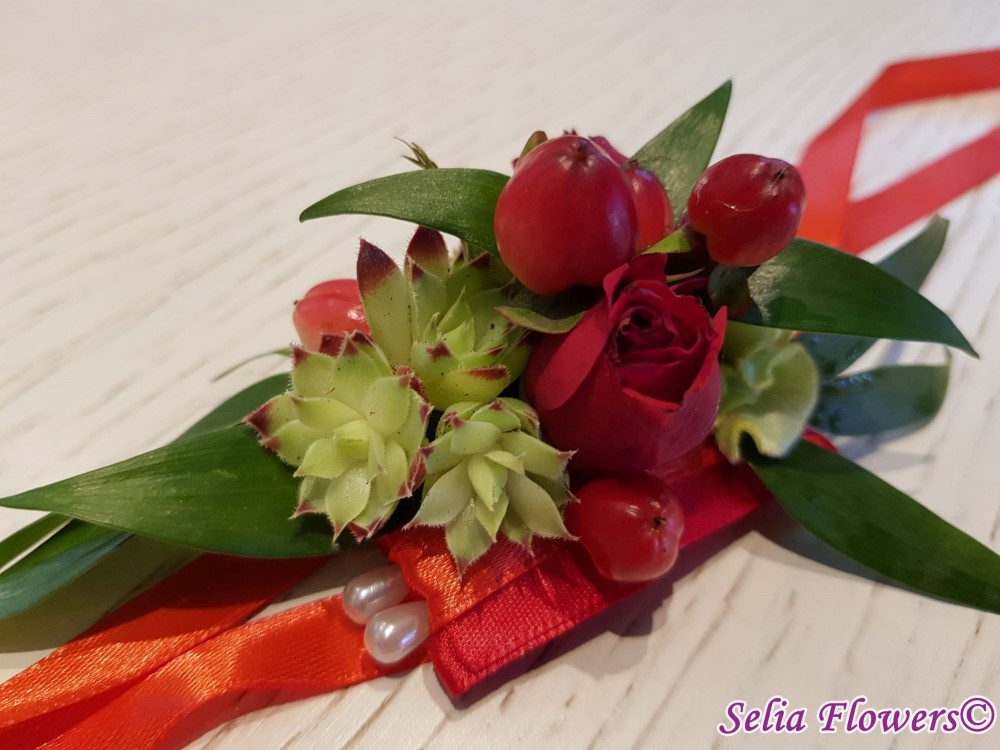 Compozitie: trandafiri tros, plante suculente, celosia.