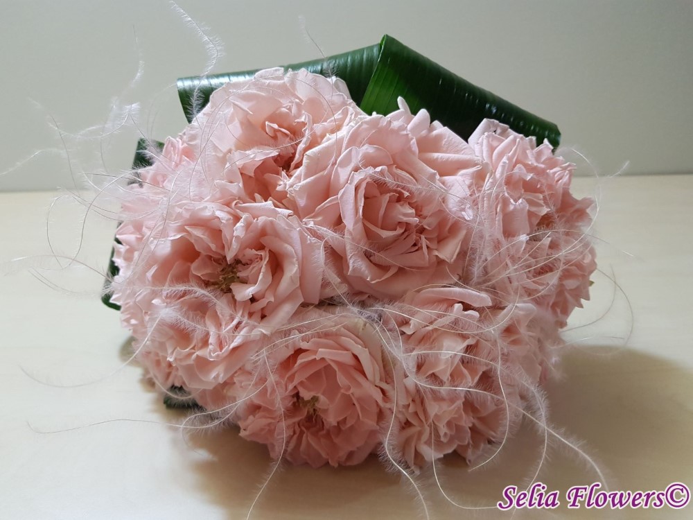 Un buchet delicat construit din trandafiri de gradina, pe care orice mireasa si l-ar dori in ziua nuntii ei.