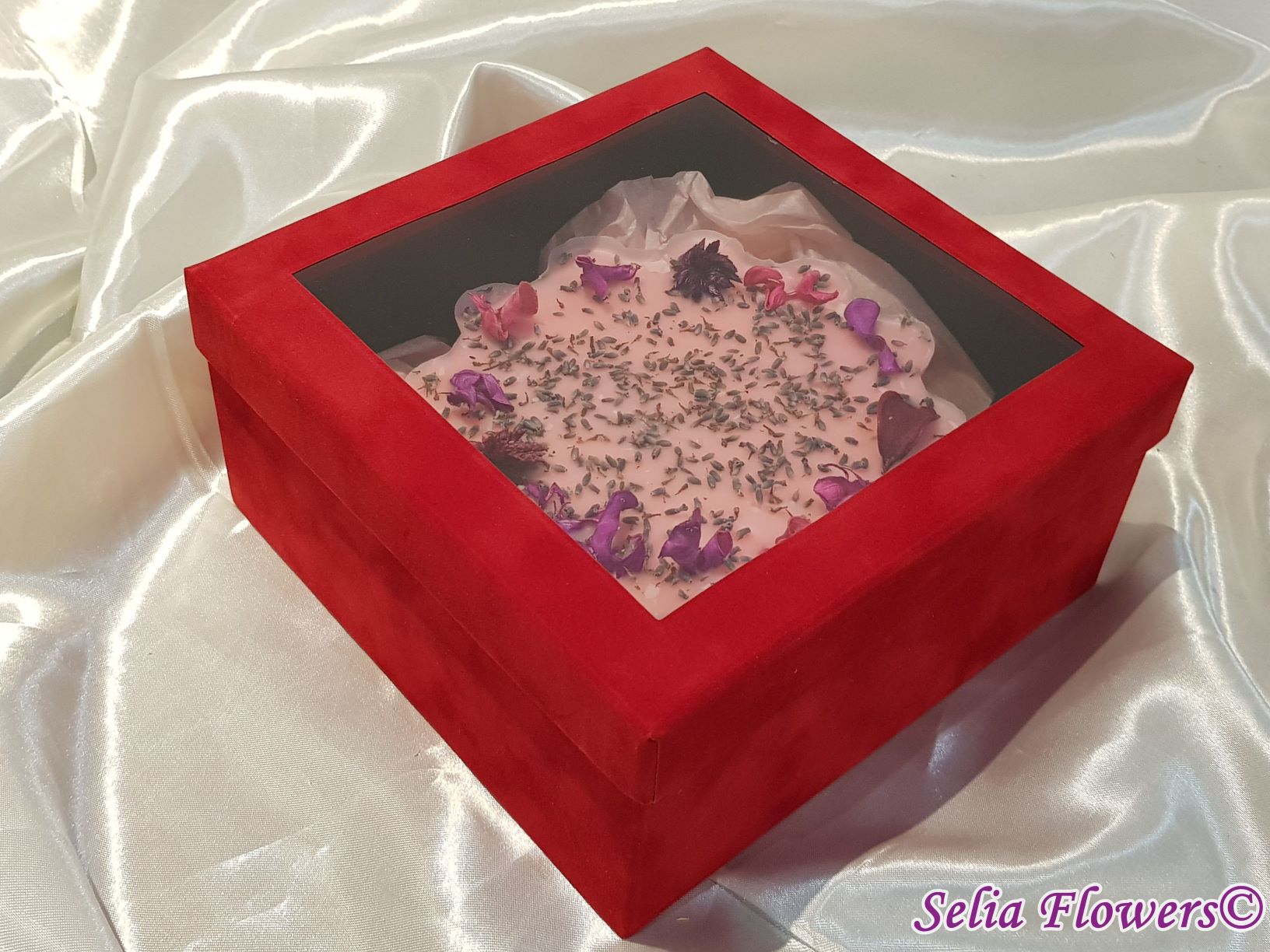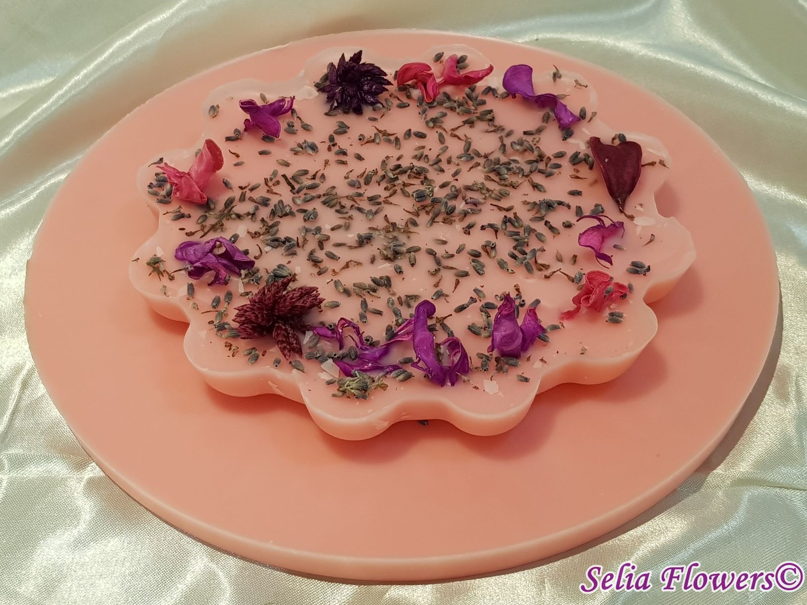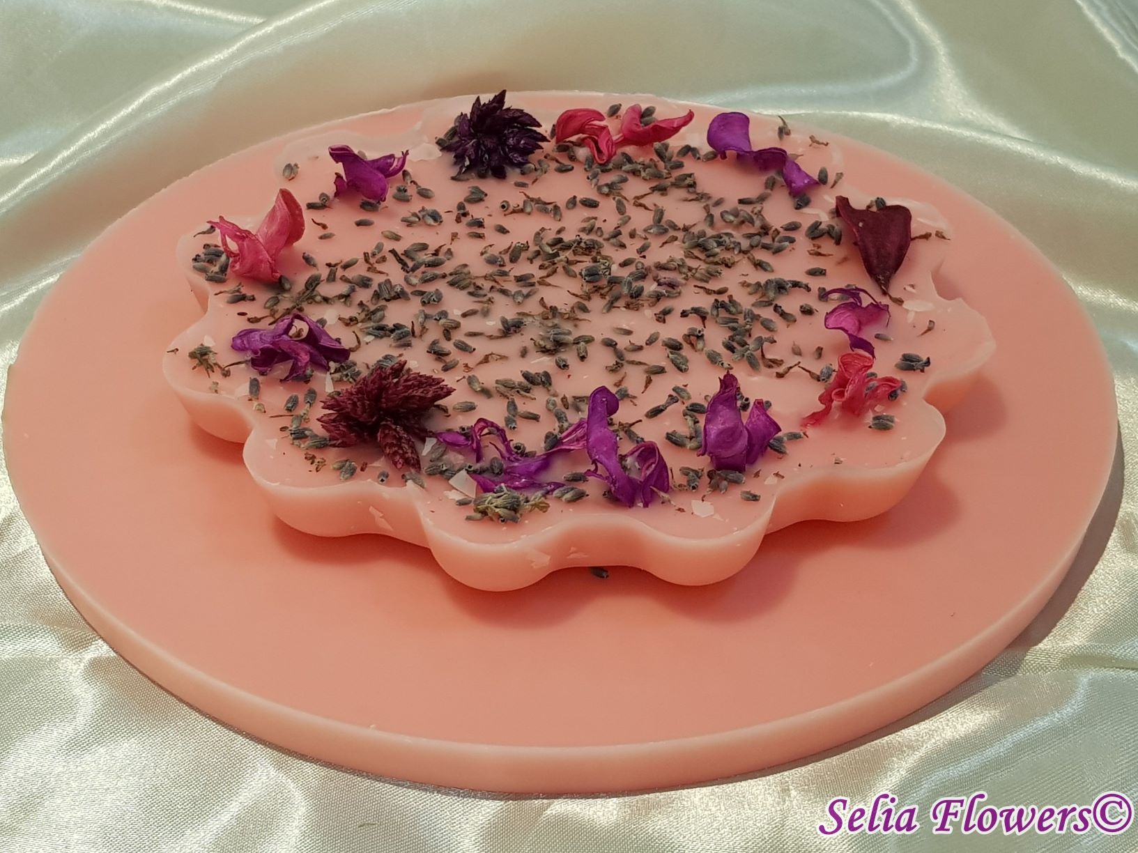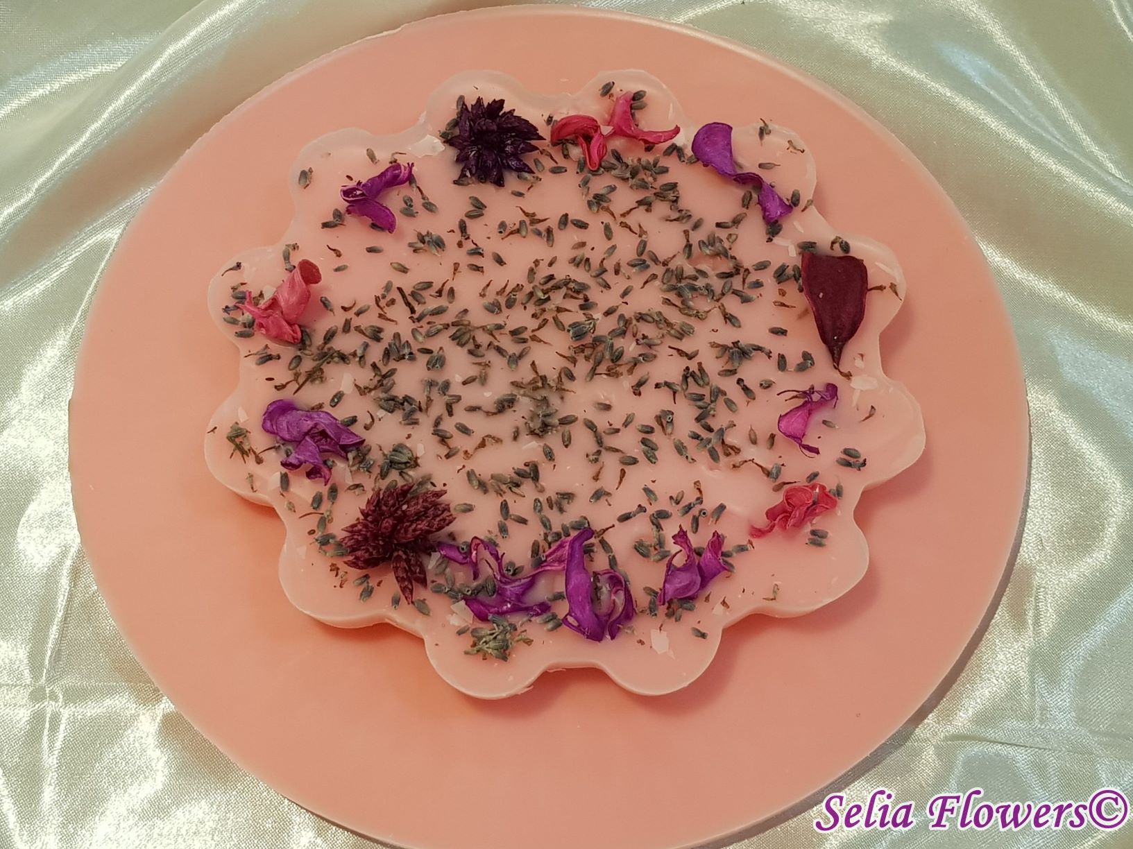 Poate fi un cadou unicat pentru cineva drag sau un decor original pentru casa ta. Baza de ceara are diametrul de 18 cm. Este un produs handmade realizat din ceară in atelierul nostru floral si decorat cu flori de lavanda si flori uscate. Decorul se poate schimba în funcție de preferințe, la fel și culoarea bazei aranjamentului.